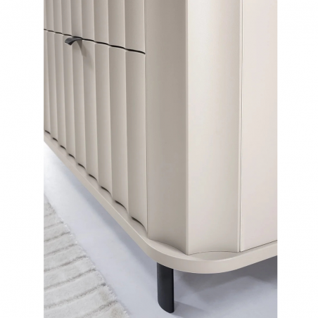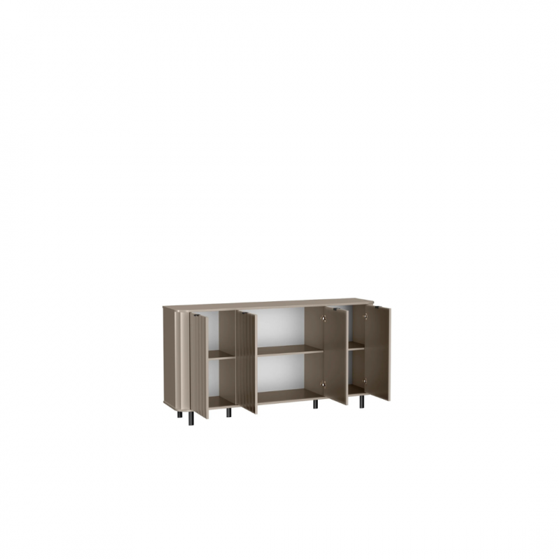 Komoda NOVADO-2 to doskonałe połączenie nowoczesnego designu i maksymalnej funkcjonalności. Dzięki aż czterem pojemnym szafkom zapewnia wygodne przechowywanie różnorodnych przedmiotów – od zastawy stołowej po tekstylia czy dokumenty.