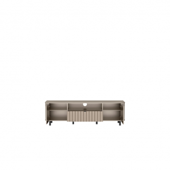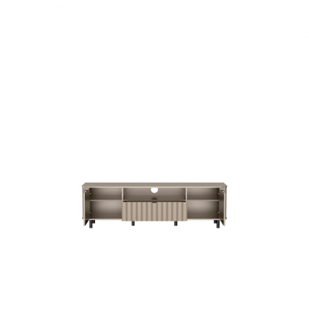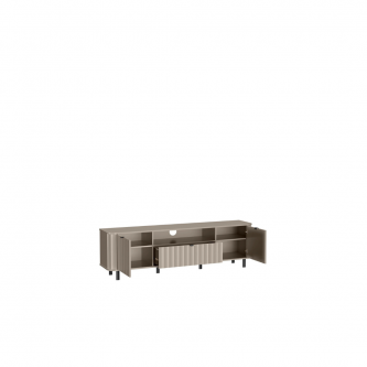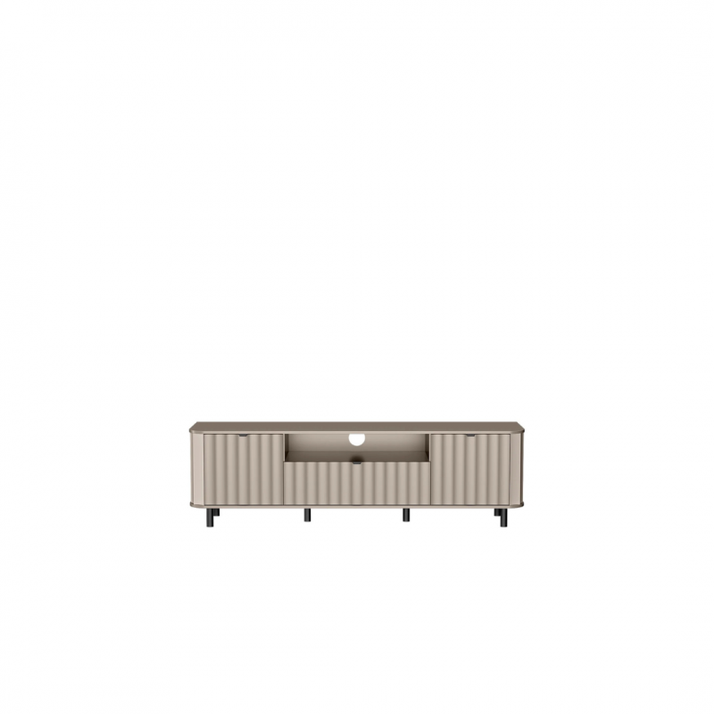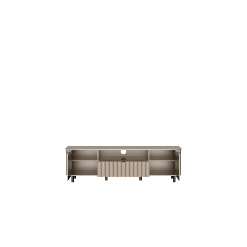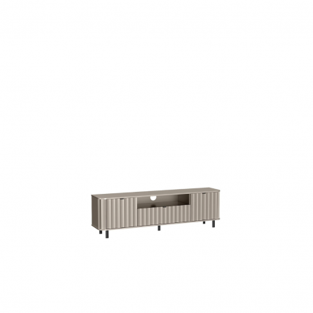 Nowoczesna szafka RTV z kolekcji NOVADO to funkcjonalna propozycja dla miłośników minimalistycznych, a jednocześnie designerskich wnętrz. Jej imponująca długość – aż 196 cm – sprawia, że doskonale sprawdzi się nawet przy dużych telewizorach, zapewniając sporo miejsca na przechowywanie i ekspozycję sprzętów multimedialnych. Szafka RTV NOVADO – 5 to połączenie nowoczesnego designu z praktycznymi rozwiązaniami. Idealna baza pod telewizor, która świetnie komponuje się z pozostałymi elementami kolekcji.