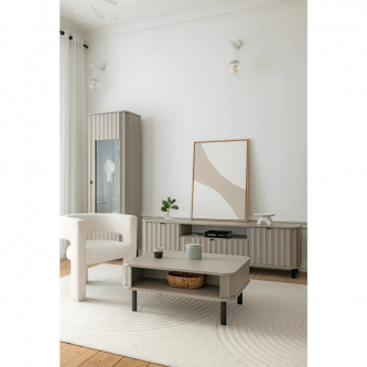 Novado to kolekcja mebli do salonu, która łączy w sobie elegancję i funkcjonalność. Jej wyróżnikiem są frezowane, foliowane fronty z MDF-u, które nadają wnętrzu wyjątkowego charakteru. Dzięki dwóm ponadczasowym kolorom – klasycznej bieli i modnemu Clay Gray – Novado wpisuje się w różne style aranżacyjne, od nowoczesnych po minimalistyczne.