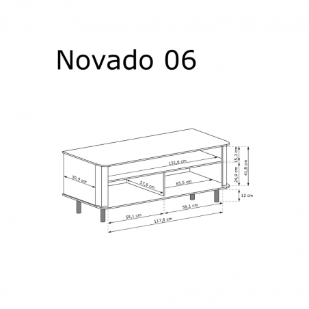 Szafka RTV NOVADO – 6 to idealne rozwiązanie do mniejszych przestrzeni. Zgrabna, funkcjonalna, z miejscem na dekoder i schowkami za klapami. Zaokrąglony blat, metalowe nogi i dwa modne kolory sprawiają, że świetnie wpisuje się w nowoczesne wnętrza.
