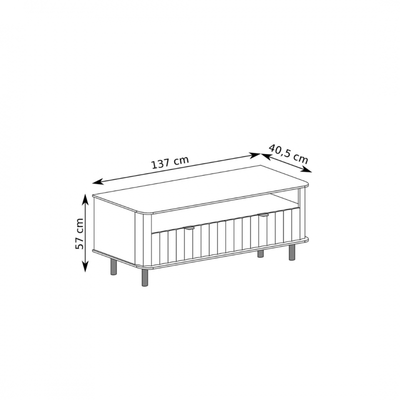 Model wyposażono w otwartą półkę, stworzoną z myślą o dekoderze, konsoli lub soundbarze – zapewniając łatwy dostęp do najczęściej używanego sprzętu. Dwie zamykane klapy ukrywają pojemne schowki, pozwalając na utrzymanie porządku i przechowywanie mniej reprezentacyjnych akcesoriów.