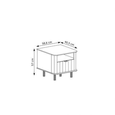 Szafka nocna NOVADO – 7 to idealna propozycja do nowoczesnych, funkcjonalnych sypialni. Jej kompaktowa forma łączy minimalistyczny design z przemyślaną funkcjonalnością. Górna otwarta wnęka doskonale sprawdzi się na książkę, okulary czy ulubione drobiazgi, które warto mieć pod ręką. Pod nią znajduje się zamykana klapa, otwierana do dołu, za którą ukryty został dodatkowy schowek – idealny na mniej reprezentacyjne przedmioty, które chcesz przechowywać dyskretnie, ale w zasięgu ręki.