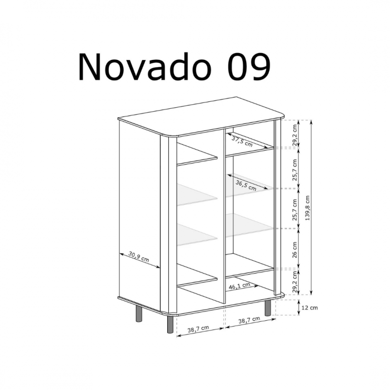NOVADO-9 – przeszklona witryna do salonu Witryna NOVADO-9 to elegancka gablota, która pozwala wyeksponować to, co najpiękniejsze. Cztery szklane półki zapewniają przestrzeń na dekoracje, książki czy porcelanę, jednocześnie nadając meblowi lekkości i nowoczesnego charakteru. Zaokrąglone krawędzie, metalowe uchwyty i owalne nogi nadają całości wyjątkowego stylu, charakterystycznego dla kolekcji NOVADO. Witryna sprawdzi się zarówno w salonie, jak i jadalni – tworząc praktyczne, a zarazem dekoracyjne uzupełnienie aranżacji.