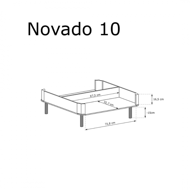 Model NOVADO-10 wyróżniają zaokrąglone krawędzie blatu, nadające całości miękkości oraz bezpieczeństwa w codziennym użytkowaniu. Ustawiony na smukłych, owalnych nogach, prezentuje się lekko, a jednocześnie stabilnie – bez zbędnej masywności. Dwie otwarte wnęki zlokalizowane po przeciwnych stronach ławy umożliwiają wygodne przechowywanie codziennych przedmiotów – takich jak piloty, czasopisma, książki czy podkładki – dzięki czemu blat może pozostać uporządkowany i czysty.