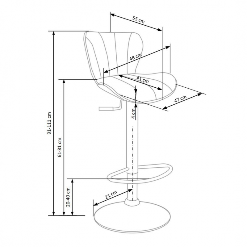 Hoker z funkcją regulacji wysokości H69 o wymiarach: 48/55/91-111/61-81 cm,