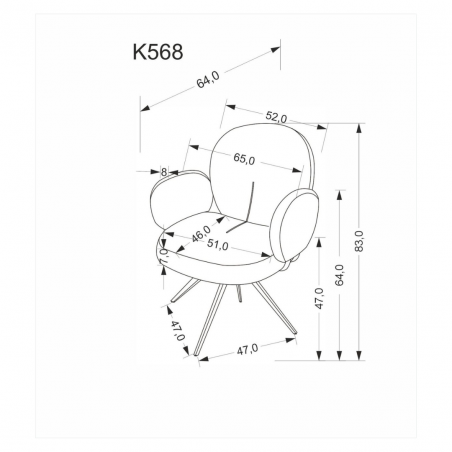Krzesło K568 wymiary: 65/64/82/47 cm,