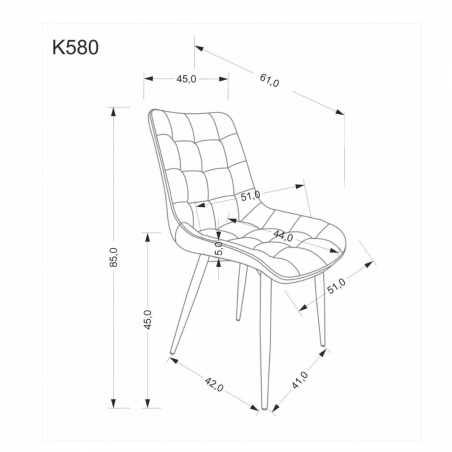 Krzesło K580 o wymiarach: 51/61/85/45 cm,