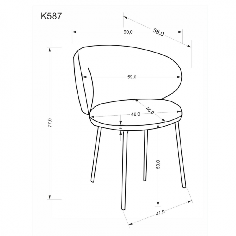Krzesło K587 o wymiarach: 60/58/77/50 cm,