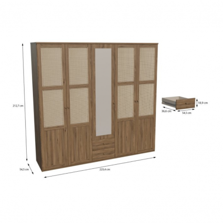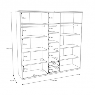- Szafa ma wymiary 223,4 cm szerokości, 212,7 cm wysokości i 54,5 cm głębokości