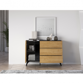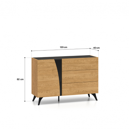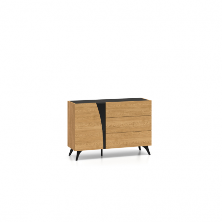Komoda Toscania 05 to idealny mebel do przechowywania. Za drzwiczkami znajduje się półka dzieląca przestrzeń na dwie pojemne wnęki. Przechowasz w nich ubrania, ręczniki czy pościel. Prawą stronę mebla tworzą trzy głębokie szuflady, które zapewnią odpowiednią ilość miejsca na dokumenty, obrusy lub inne domowe tekstylia. Komoda będzie świetnym dopełnieniem Twojego salonu lub sypialni. Szeroki blat będzie idealnym miejscem do wyeksponowania eleganckich wazonów, pamiątek z podróży lub innych ulubionych gadżetów. Komoda Toscania 05 łączy ze sobą wysoką funkcjonalność ze współczesnym designem. Bezuchwytowe fronty dodatkowo podkreślają nowoczesną stylistykę mebla, który spełni Twoje oczekiwania.