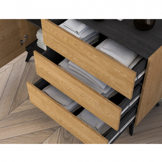 - Szuflady ze wzmocnionym dnem oraz funkcją pełnego wysuwu.