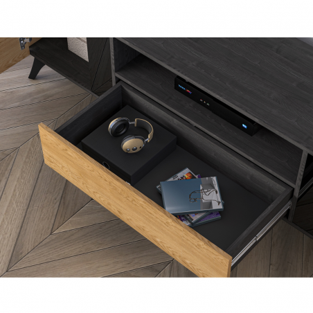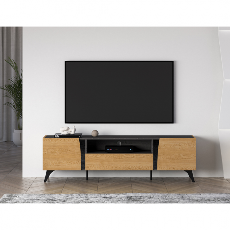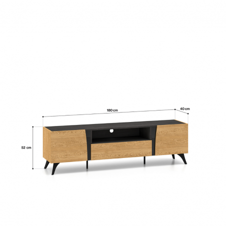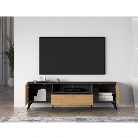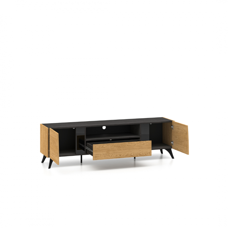 Szafka RTV Toscania 06 to idealny mebel pod Twój telewizor. Dwie zamknięte wnęki tworzą bardzo pojemną przestrzeń do przechowywania, a otwarte półki oraz szeroki blat w prosty sposób pomogą uporządkować Twoje sprzęty multimedialne. Szafka Toscania 06 łączy ze sobą wysoką funkcjonalność ze współczesnym designem. Bezuchwytowe fronty dodatkowo podkreślają nowoczesną stylistykę mebla, który spełni Twoje oczekiwania.