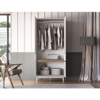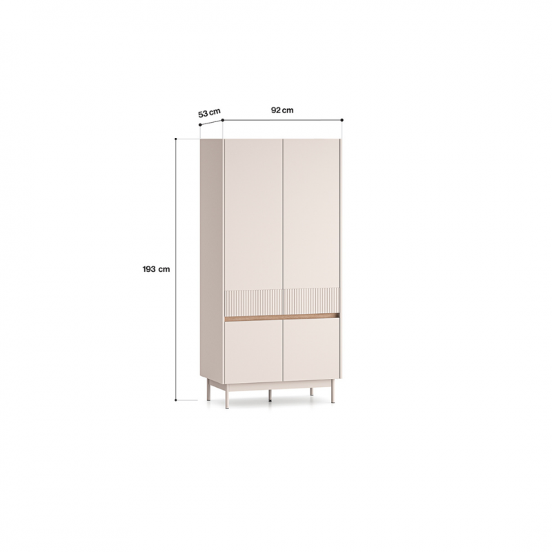 Czterodrzwiowa szafa Dunea 01 to mebel, w którym przechowasz swoją odzież, dodatki oraz domowe tekstylia. Dzięki solidnemu drążkowi umieszczonemu na całej szerokości bryły, z łatwością powiesisz płaszcze, garnitury czy sukienki. Duża pojemność dolnej wnęki pozwoli schować na przykład pościel lub ręczniki. Wybierz szafę Dunea i zachowaj porządek w swoim wnętrzu.