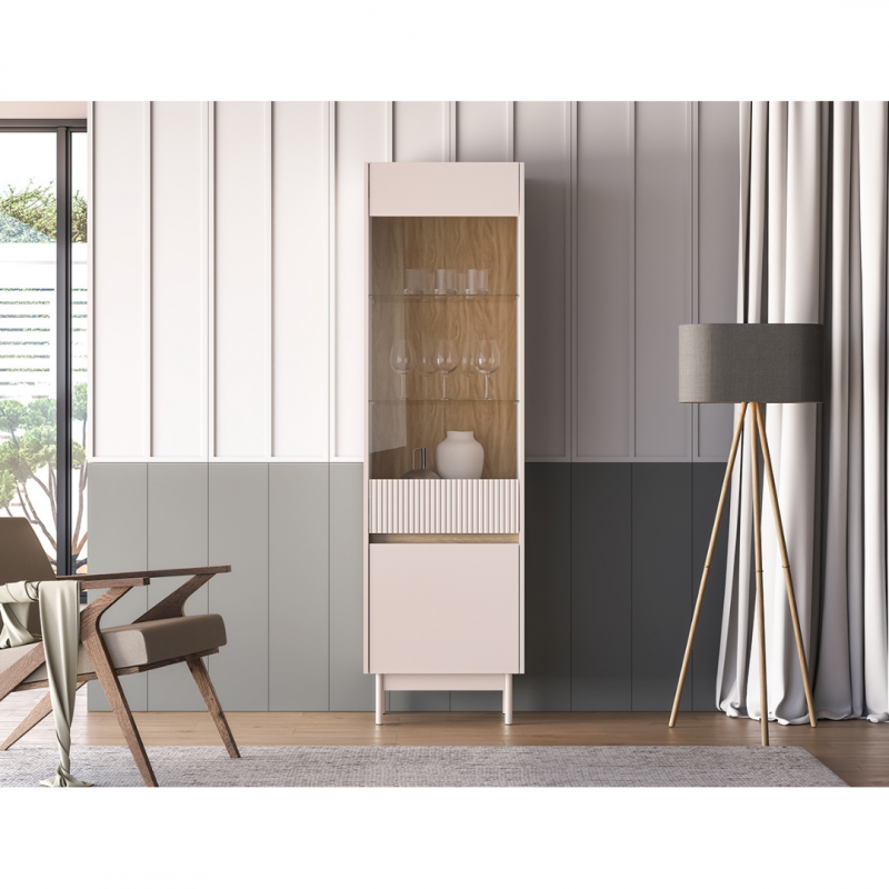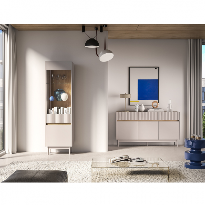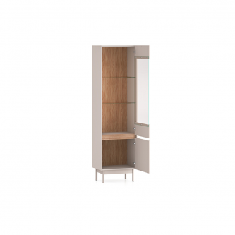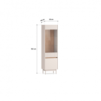 Witryna Dunea 02 to mebel, dzięki któremu przechowasz i wyeksponujesz swoje ulubione przedmioty. Mebel podzielony jest na dwie zamknięte części. Dolna to miejsce niedostępne dla oczu Twoich gości. Schowasz w nim obrusy czy ręczniki. Górna część to przestrzeń podzielona dwiema szklanymi półkami tworzącymi trzy wnęki. Dzięki przeszklonym drzwiczkom wyeksponujesz ulubione, porcelanowe filiżanki czy piękną, stylowa zastawę. Wybierz witrynę Dunea i zachowaj porządek w swoim wnętrzu.