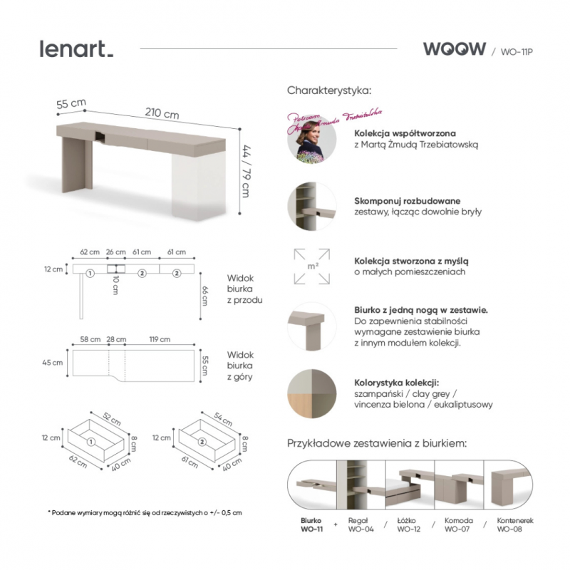 Wąski pokój w kamienicy? Niewielka przestrzeń w bloku, gdzie każdy centymetr się liczy? WOOW radzi sobie z niemal z każdym wyzwaniem architektonicznym. Nasze meble są jak klocki – możecie je układać wzdłuż ściany, w narożniku, a nawet tworzyć z nich funkcjonalne przegrody w większych pomieszczeniach.