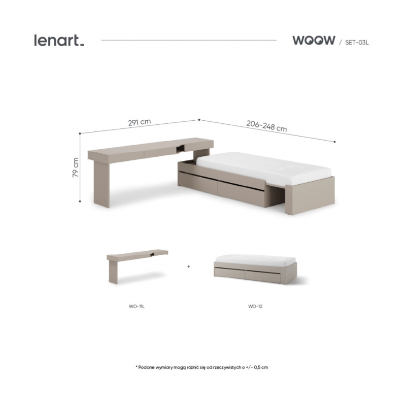 Wąski pokój w kamienicy? Niewielka przestrzeń w bloku, gdzie każdy centymetr się liczy? WOOW radzi sobie z niemal z każdym wyzwaniem architektonicznym. Nasze meble są jak klocki – możecie je układać wzdłuż ściany, w narożniku, a nawet tworzyć z nich funkcjonalne przegrody w większych pomieszczeniach.