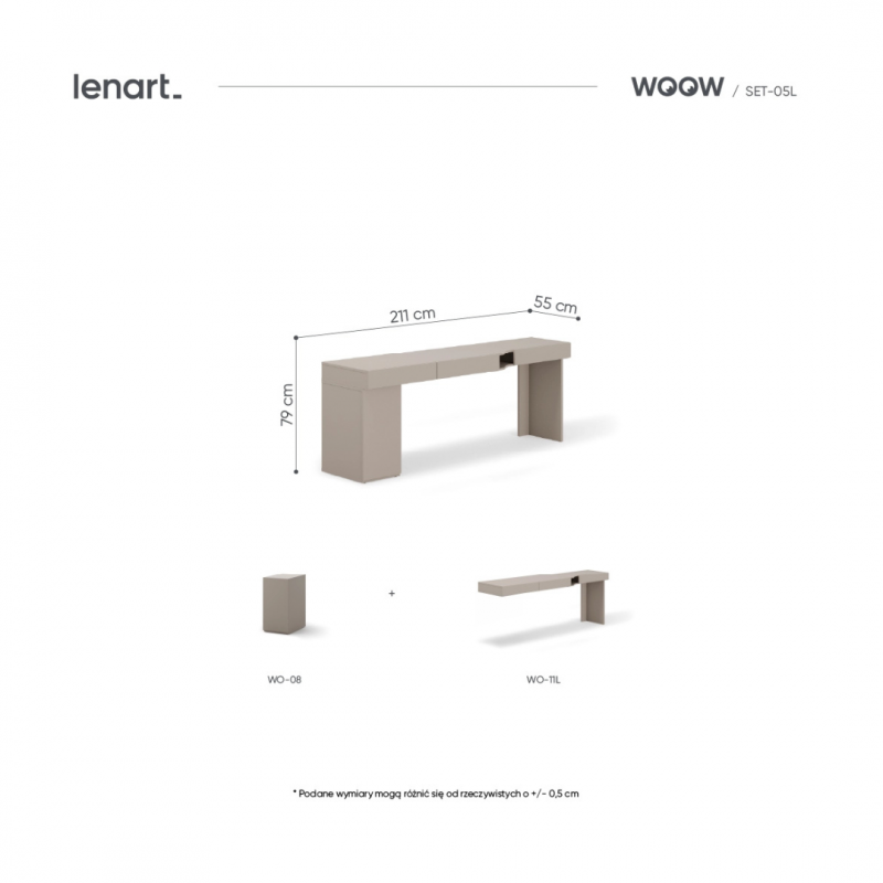 Wąski pokój w kamienicy? Niewielka przestrzeń w bloku, gdzie każdy centymetr się liczy? WOOW radzi sobie z niemal z każdym wyzwaniem architektonicznym. Nasze meble są jak klocki – możecie je układać wzdłuż ściany, w narożniku, a nawet tworzyć z nich funkcjonalne przegrody w większych pomieszczeniach.