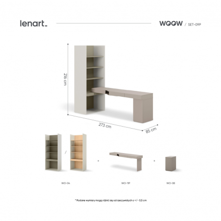 Wąski pokój w kamienicy? Niewielka przestrzeń w bloku, gdzie każdy centymetr się liczy? WOOW radzi sobie z niemal z każdym wyzwaniem architektonicznym. Nasze meble są jak klocki – możecie je układać wzdłuż ściany, w narożniku, a nawet tworzyć z nich funkcjonalne przegrody w większych pomieszczeniach.