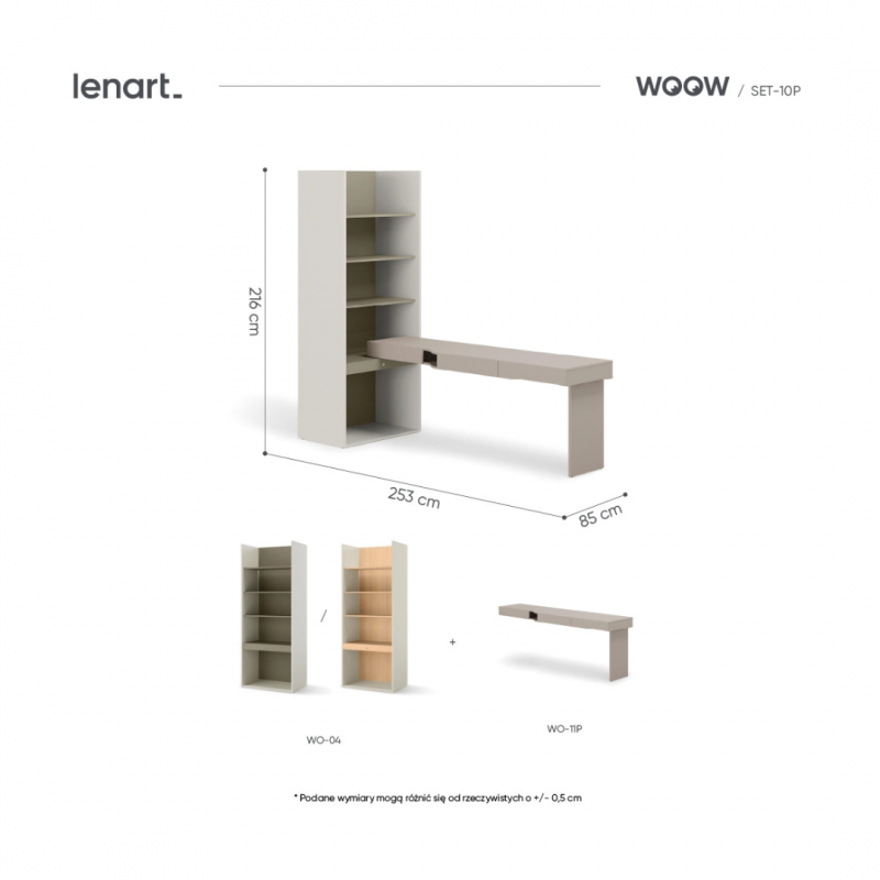 Wąski pokój w kamienicy? Niewielka przestrzeń w bloku, gdzie każdy centymetr się liczy? WOOW radzi sobie z niemal z każdym wyzwaniem architektonicznym. Nasze meble są jak klocki – możecie je układać wzdłuż ściany, w narożniku, a nawet tworzyć z nich funkcjonalne przegrody w większych pomieszczeniach.