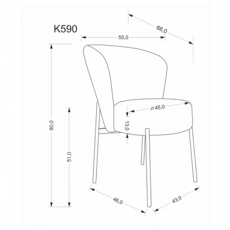 Krzesło K590 o wymiarach: 55/66/80/51 cm,