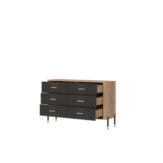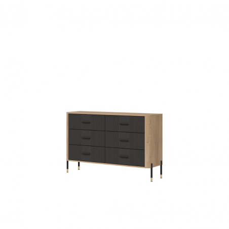 Komoda Dante DT04 to nowoczesna symetria i elegancja w funkcjonalnej formie. Wprowadź do swojego wnętrza nową jakość dzięki komodzie Dante DT04 – meblowi, który łączy nowoczesny styl z maksymalną praktycznością. Ten designerski model to propozycja dla osób ceniących wyważone proporcje, wysoką jakość wykonania i ponadczasowy wygląd. Matowe fronty do w wyboru w pięciu wariantach kolorystycznych, sześciu równomiernie rozmieszczonych szufladach tworzą elegancki rytm wizualny, podkreślony przez złote lub czarne uchwyty do wyboru i delikatne wykończenia. Korpus w kolorze naturalnego drewna dodaje meblowi ciepła i kontrastu, tworząc unikalną kompozycję, która pasuje zarówno do wnętrz loftowych, jak i skandynawskich czy nowoczesnych. Sześć przestronnych szuflad zapewnia imponującą ilość miejsca do przechowywania – idealne rozwiązanie do sypialni, salonu, garderoby czy nawet nowoczesnego biura. Dzięki starannie zaprojektowanej konstrukcji, każda szuflada pracuje płynnie i cicho, gwarantując wygodę codziennego użytkowania. Kompaktowa forma komody Dante doskonale odnajduje się zarówno w przestronnych, jak i mniejszych pomieszczeniach, oferując funkcjonalność bez kompromisów stylistycznych. Komoda DT04 to styl, który organizuje przestrzeń. Postaw na wyrafinowaną estetykę, która idzie w parze z wygodą użytkowania.