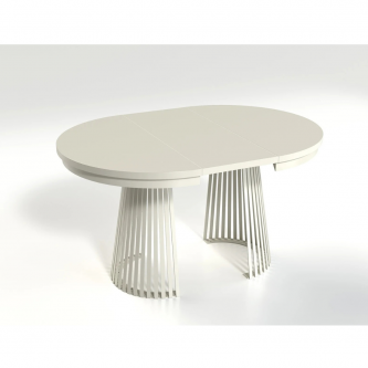 Podstawa stołu wykonana jest z metalu – stabilna i nowoczesna w formie, przyciąga wzrok i dodaje wnętrzu charakteru. Jej rzeźbiarska konstrukcja przypomina wachlarz lub rozłożystą formę geometryczną, co nadaje stołowi lekkości mimo jego solidnej budowy.