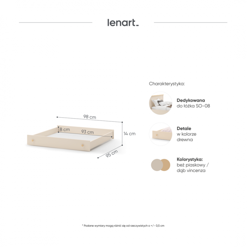 Szuflada na pościel do skompletowania z łóżkiem (SO-08). W jej wnętrzu chowasz pościel, koce lub inne akcesoria.