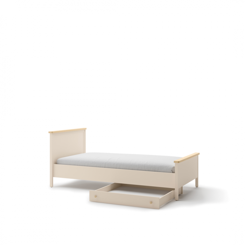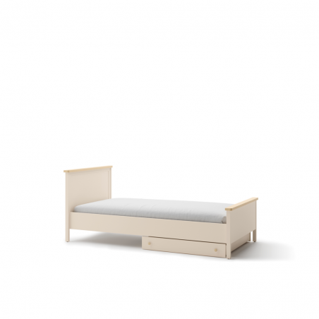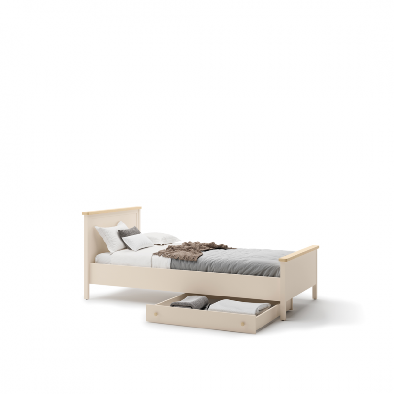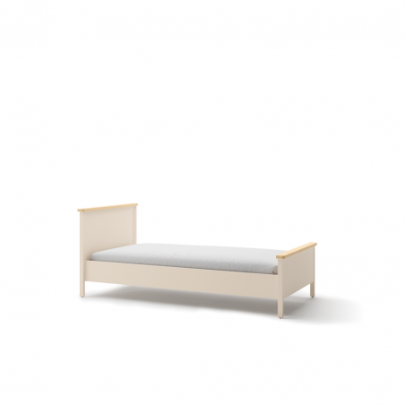 Wygodne w użytkowaniu łóżko stworzone z myślą o wielbicielkach wnętrz w klasycznym stylu. Wysoki zagłówek, elegancko wykończony dekorem w kolorze jasnego drewna, świetnie się prezentuje, a także zapewnia wygodne oparcie.