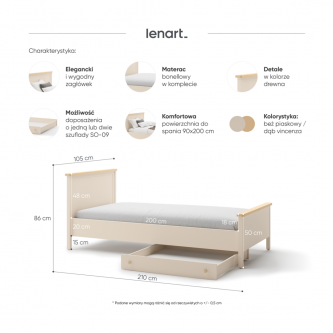 Łóżko w kolorystyce: beż piaskowy/dąb vincenza.