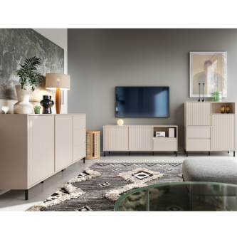 W linii AVENALE znajdziesz pięć spójnych brył, zaprojektowanych tak, by łatwo dopasować je do rytmu codziennego życia – niezależnie od tego, czy urządzasz pierwsze mieszkanie w centrum miasta, czy odświeżasz rodzinny salon. Prezentowana komoda w błyszczącej bieli odbija poranne światło, subtelnie rozjaśniając przestrzeń i podkreślając ryflowane fronty. Smukłe, czarne nogi dodają konstrukcji lekkości, a wyważone proporcje sprawiają, że mebel dobrze odnajdzie się zarówno obok sofy, jak i pod dużym lustrem w przedpokoju.