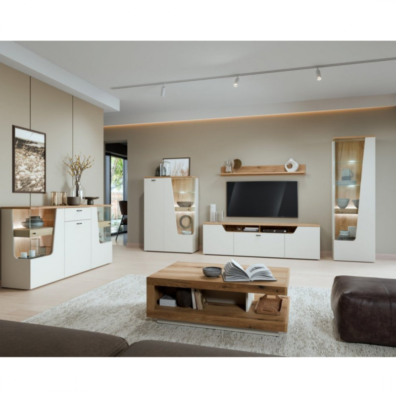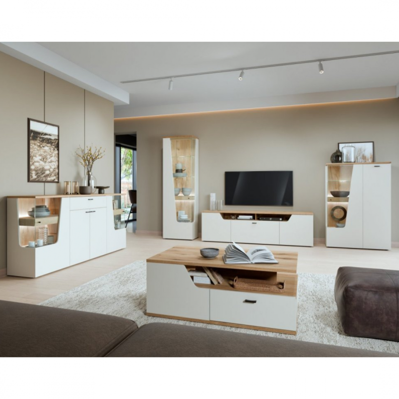 Poznaj naszą nowoczesną komodę RTV CTUF01 z kolekcji CUT OUT, która wprowadzi do Twojego wnętrza wyjątkowy styl i elegancję. Jej wymiary to 165 cm szerokości, 56,5 cm wysokości oraz 45 cm głębokości, co sprawia, że jest idealnym rozwiązaniem zarówno do niewielkich, jak i przestronnych salonów.
