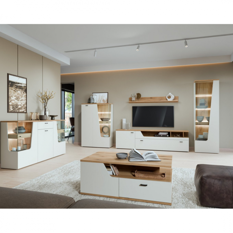 Stolik CUT OUT doskonale sprawdzi się w salonie, stając się centralnym punktem pomieszczenia.Stolik kawowy wykorzystasz do postawienia filiżanki aromatycznej kawy, na książkę lub tablet. Świetnie komponuje się z innymi meblami z tej samej kolekcji, dzięki czemu możesz stworzyć harmonijną aranżację wnętrza. Jego minimalistyczny design, uwydatniony czarnymi matowymi uchwytami, doskonale wpisuje się w trendy nowoczesnego stylu.