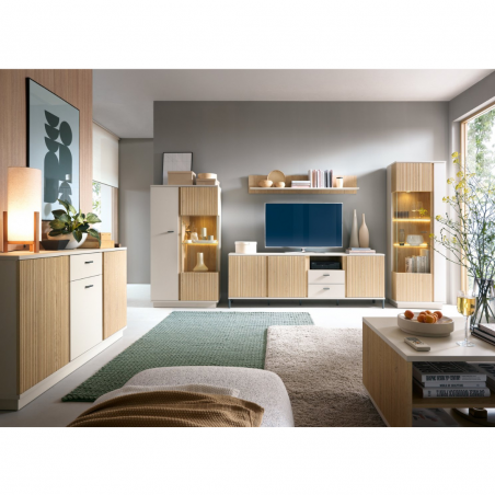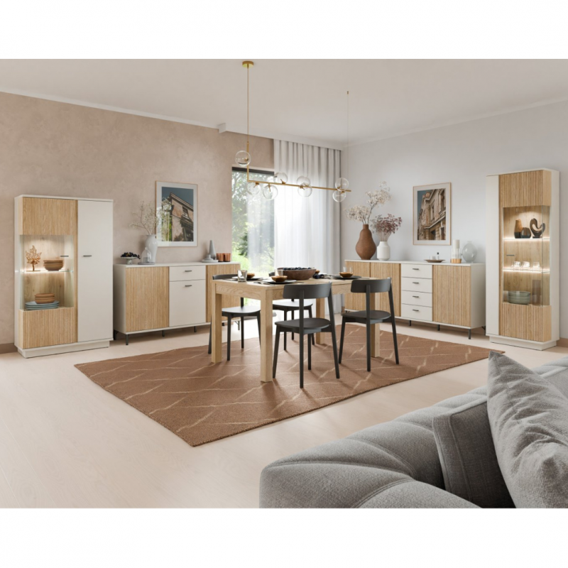 Komoda LUSK101 świetnie odnajdzie się w salonie, jadalni, a nawet w domowym biurze. Możliwość ustawienia mebla na nóżkach sprawia, że świetnie współgra z robotem sprzątającym, a także dodaje bryle wizualnej lekkości – idealnej do wnętrz w stylu japandi, skandynawskim czy modern classic. Z kolei wersja z cokołem przypadnie do gustu miłośnikom mebli bardziej zintegrowanych z podłogą. Jeśli zależy Ci na bardziej loftowym efekcie, wybierz wersję na nóżkach i ustaw komodę na tle ciemniejszej ściany – kontrast pięknie wydobędzie ryflowane fronty i linię bryły.