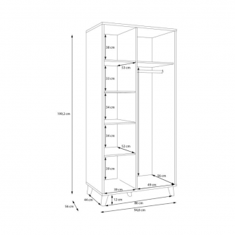 - Wymiary szafy: szerokość 94,8 cm, wysokość 199,2 cm, głębokość 56 cm