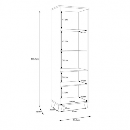 Wymiary witryny: szerokość: 64,8 cm, wysokość: 199,2 cm, głębokość: 42 cm