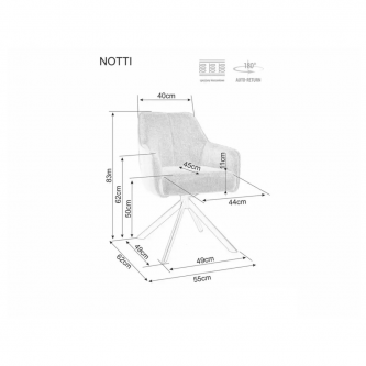 Siedzisko obracane w zakresie 180st, z funkcją powrotu do pierwotnej pozycji.
