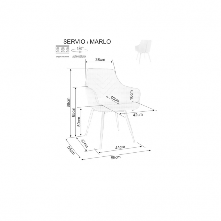 Funkcja auto-return - siedzisko obracane w zakresie 180st, z funkcją powrotu do pierwotnej pozycji. Sprężyny kieszeniowe w siedzisku,