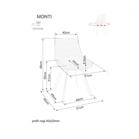 Siedzisko obracane w zakresie 180st, z funkcją powrotu do pierwotnej pozycji.