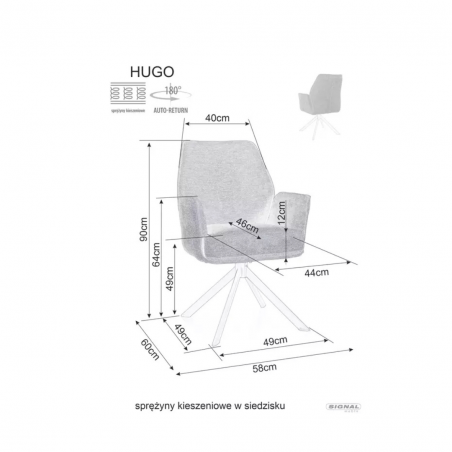 Funkcja auto-return - siedzisko obracane w zakresie 180st, z funkcją powrotu do pierwotnej pozycji. Sprężyny kieszeniowe w siedzisku.