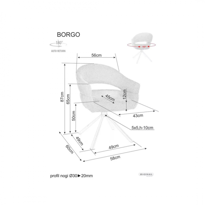 Krzesło BORGO tapicerka: tkanina Raven 22, stelaż: metal,