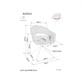 Funkcja auto-return - siedzisko obracane w zakresie 180st, z funkcją powrotu do pierwotnej pozycji.
