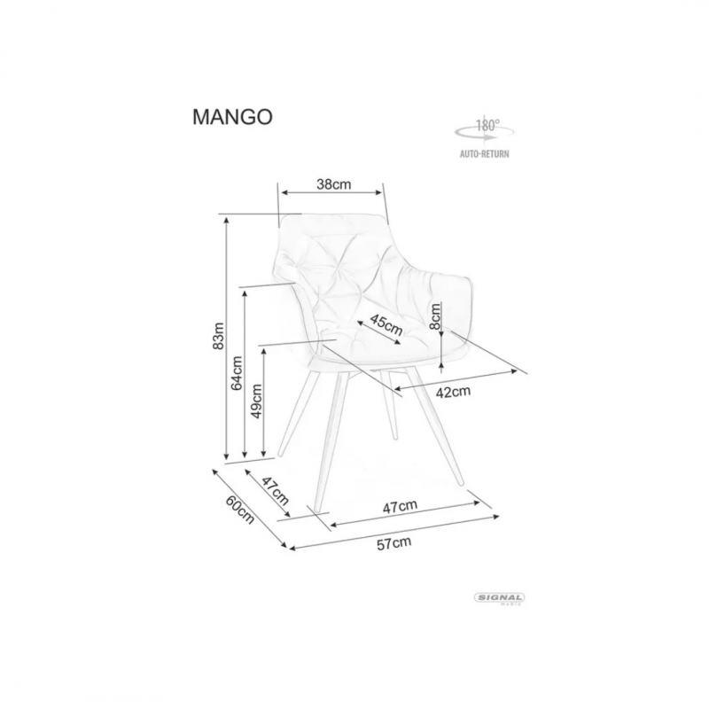 Siedzisko obracane w zakresie 180st, z funkcją powrotu do pierwotnej pozycji.