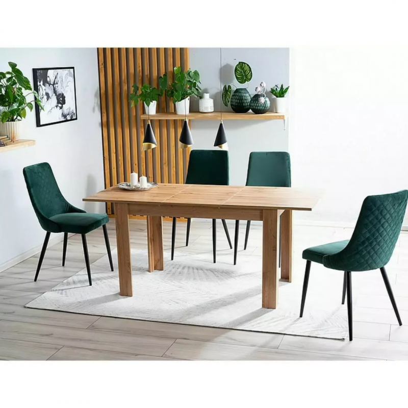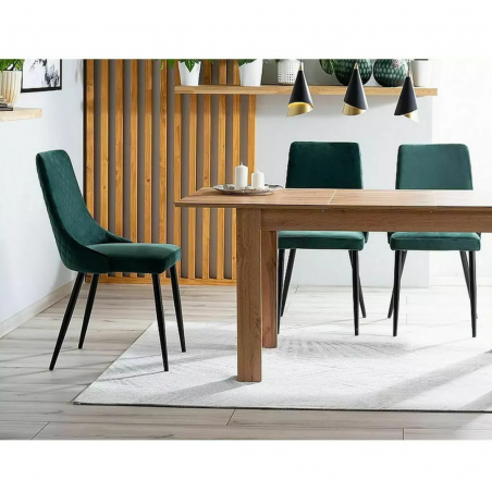 Kolor: zielony, stelaż: metal - czarny mat. Tył oparcia posiada ozdobne pikowanie w romby.