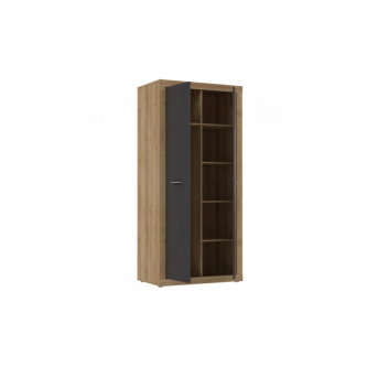 Solidna konstrukcja wykonana z trwałej płyty meblowej oraz zabezpieczone obrzeża ABS gwarantują odporność na uszkodzenia i codzienne użytkowanie. Drzwi uchylne otwierają się lekko i cicho, co zwiększa komfort korzystania z szafy.
