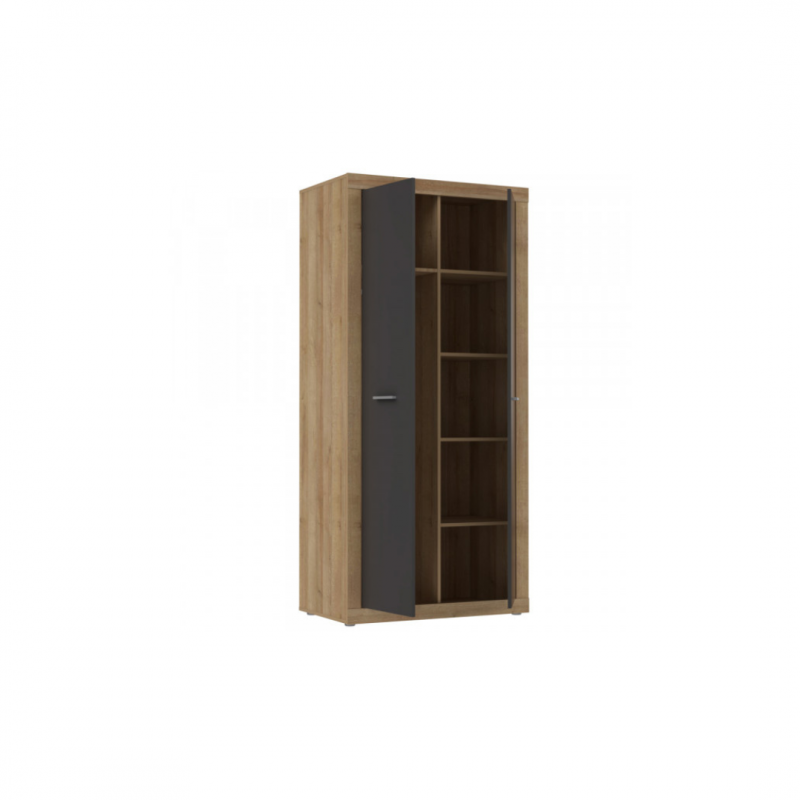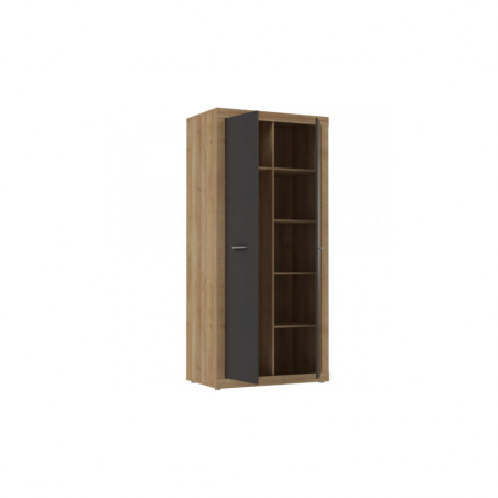 Szafa wyposażona jest w drążek na wieszaki oraz praktyczne półki, które umożliwiają wygodne rozmieszczenie ubrań — zarówno tych składanych, jak i wiszących. Dzięki pięciu pojemnym półkom z łatwością uporządkujesz odzież, dodatki czy pościel. To kompaktowy, ale bardzo pojemny mebel, który pozwoli utrzymać porządek nawet w mniejszych pomieszczeniach.