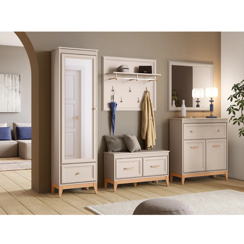 Kompaktowa, elegancka i niezwykle praktyczna – komoda WINDSOR W-19 to doskonały wybór do przedpokoju, w którym liczy się zarówno funkcjonalność, jak i styl. Wyróżnia ją subtelny kolor kaszmir, dębowe nogi i perfekcyjnie dopracowane detale, które tworzą spójną całość o ponadczasowym charakterze.