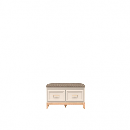 Niska, solidna konstrukcja zapewnia wygodne miejsce do siedzenia podczas zakładania butów, a estetyczne wykończenie w kolorze kaszmir wprowadza do wnętrza spokój i elegancję.