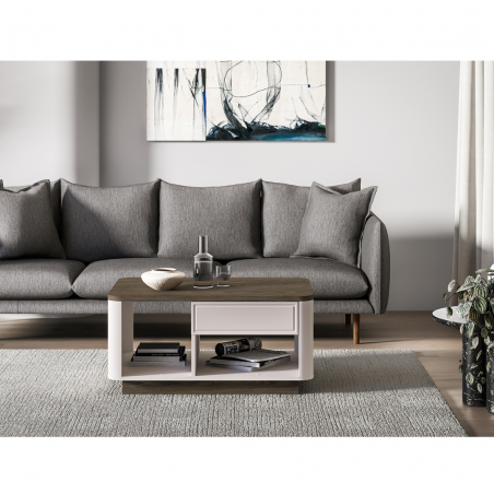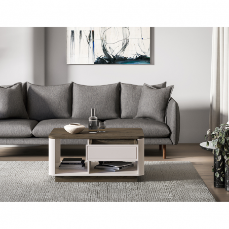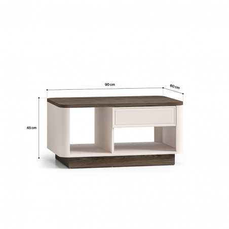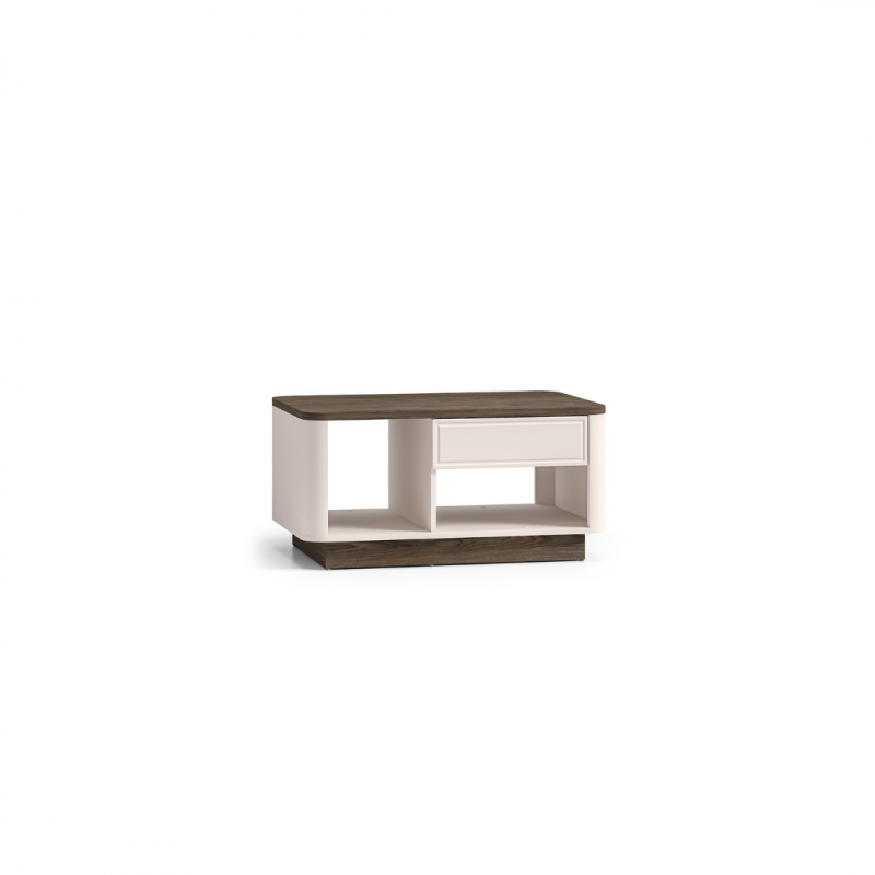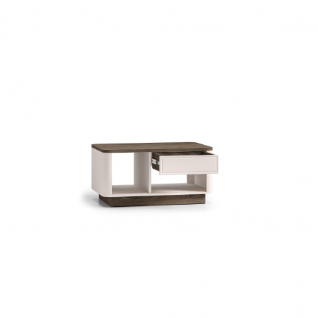 Stolik kawowy Vilavio 06 to mebel idealny do pokoju dziennego. Postawisz na nim filiżankę kawy lub odłożysz czytaną gazetę. Szeroki blat pozwoli też wyeksponować na przykład Twoje ulubione albumy. Dwie pojemne wnęki pod blatem to świetne miejsce na przechowanie książek czy kolekcji magazynów. Dzięki wygodnej szufladzie szybko i łatwo schowasz np. piloty do telewizora. Wybierz stolik Vilavio i zachowaj porządek w swoim wnętrzu.