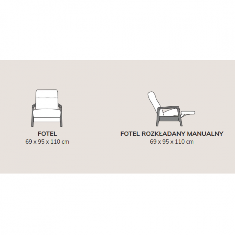 FOTEL ROZKŁADANY MANUALNY o wymiarach: