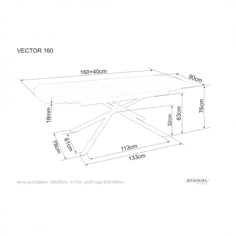 Stół rozkładany VECTOR 160, blat: ceramika, stelaż: metal,